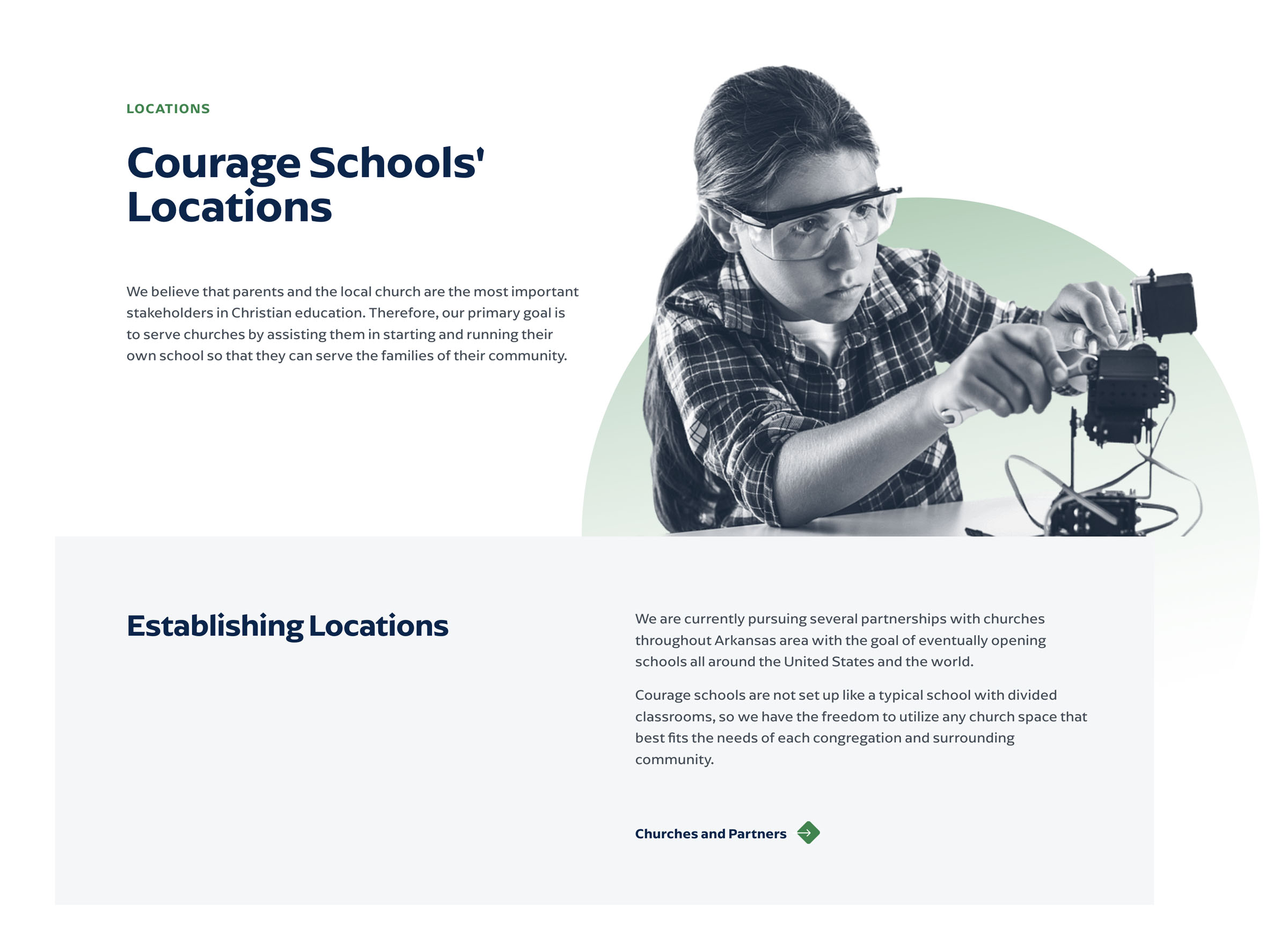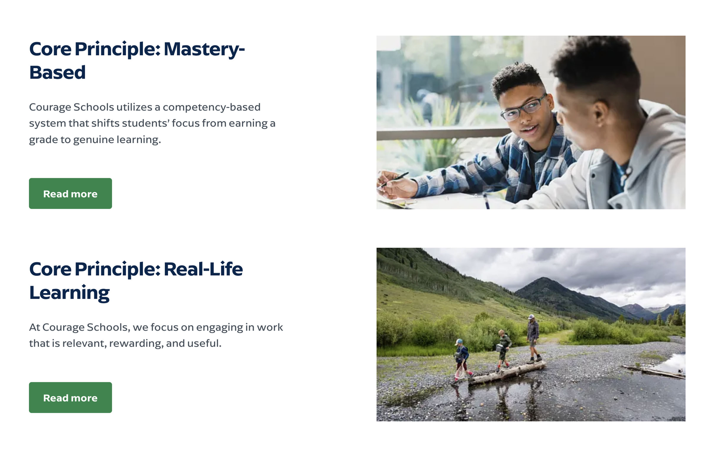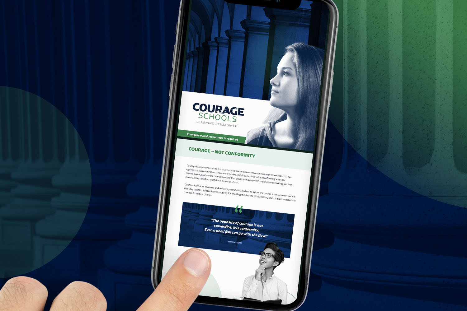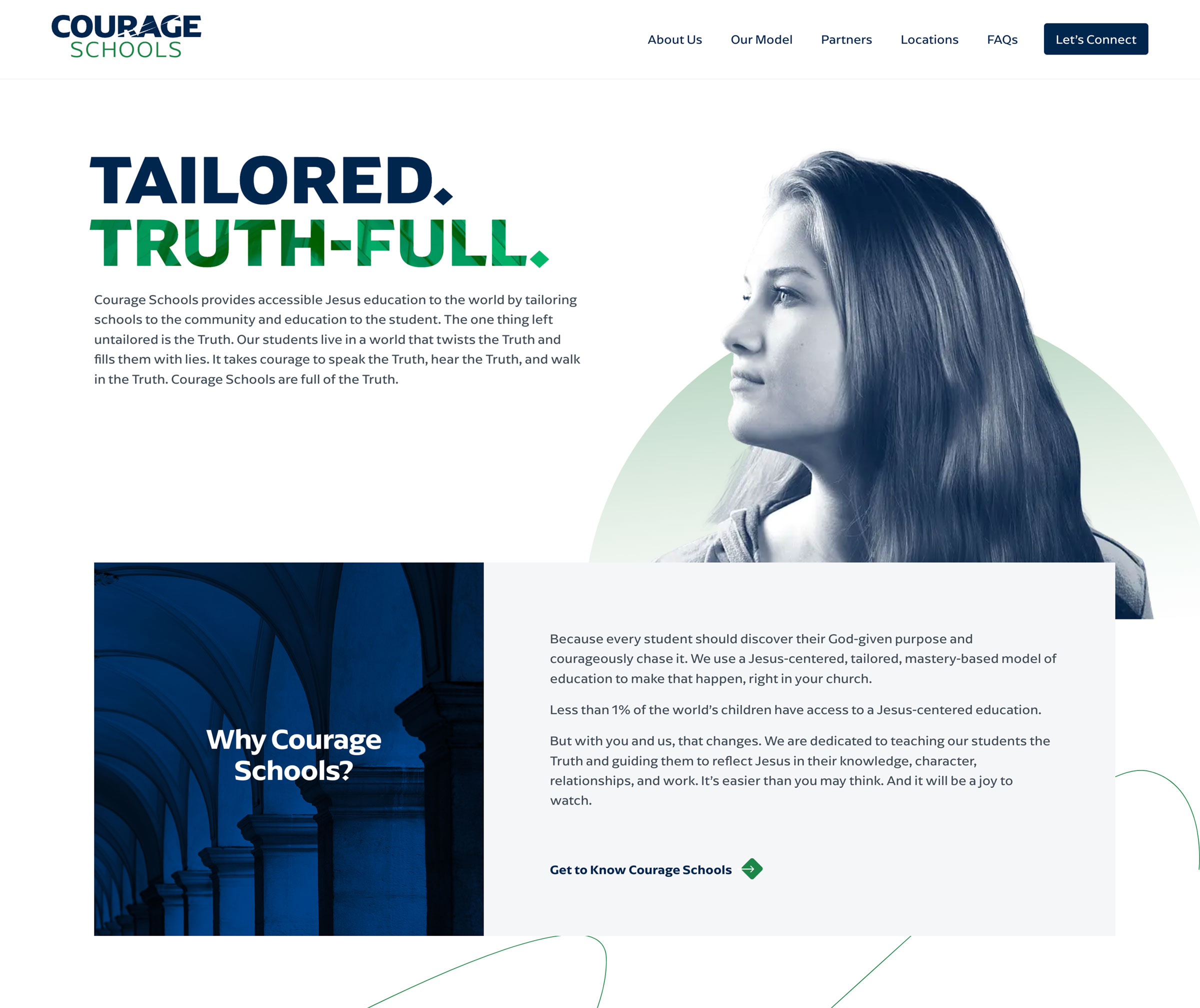 Courage Schools emphasize mastery, where tests and grades are not the measure of success and learning expands far beyond the classroom. We helped Courage Schools share their unique vision with a new website featuring their model, locations, and partnership opportunities.