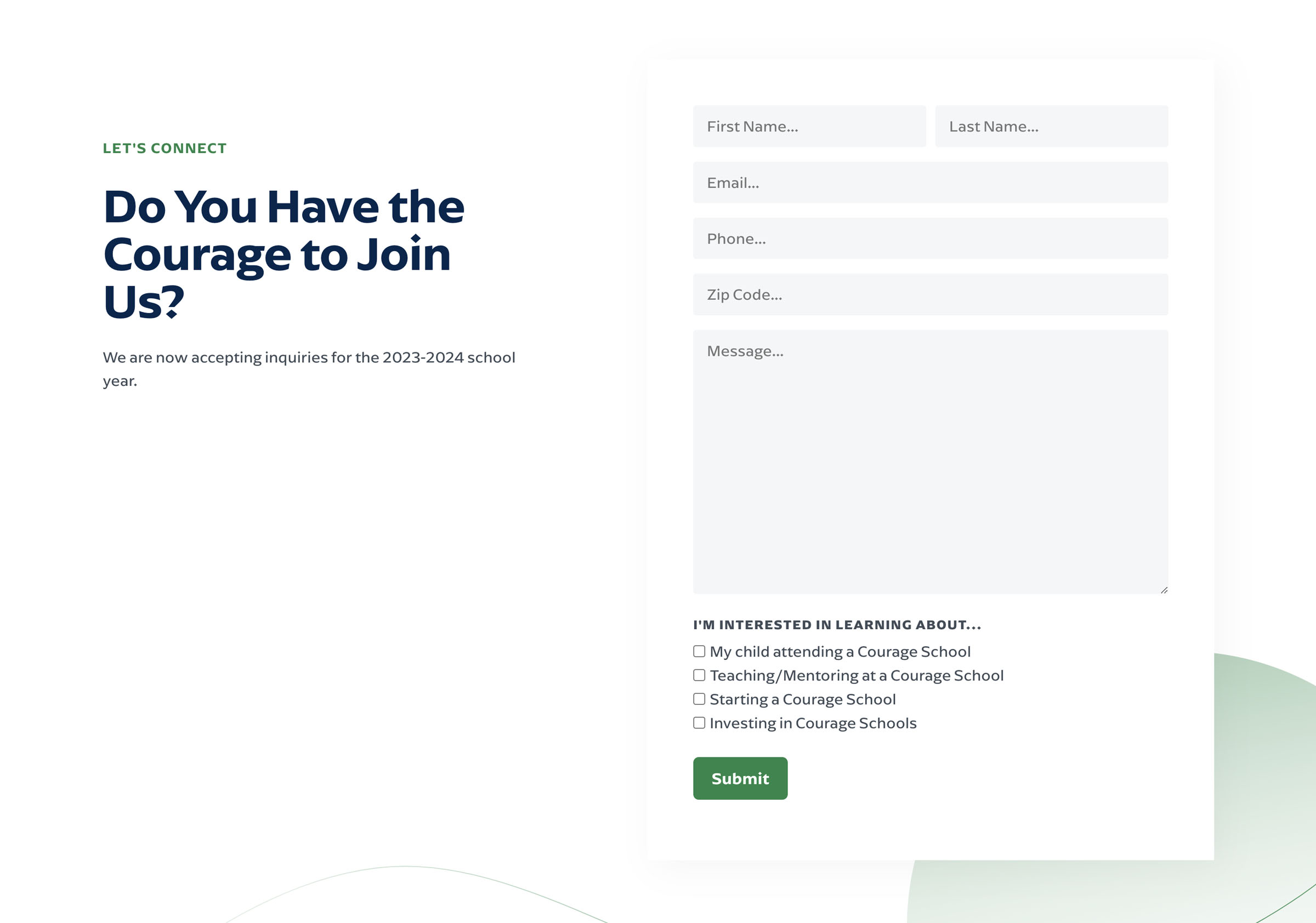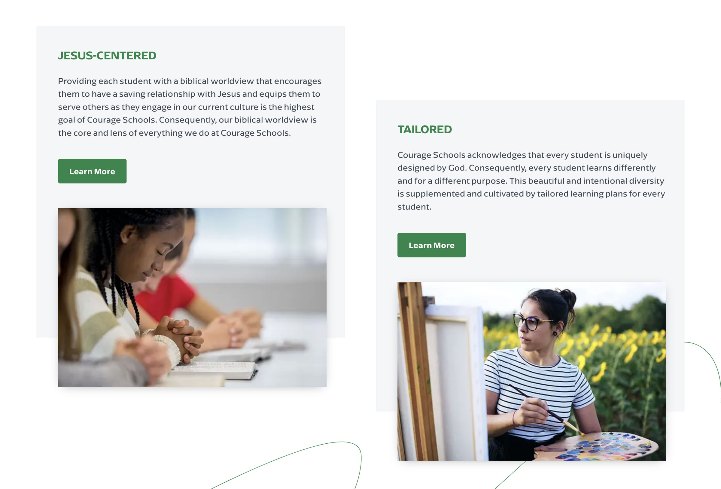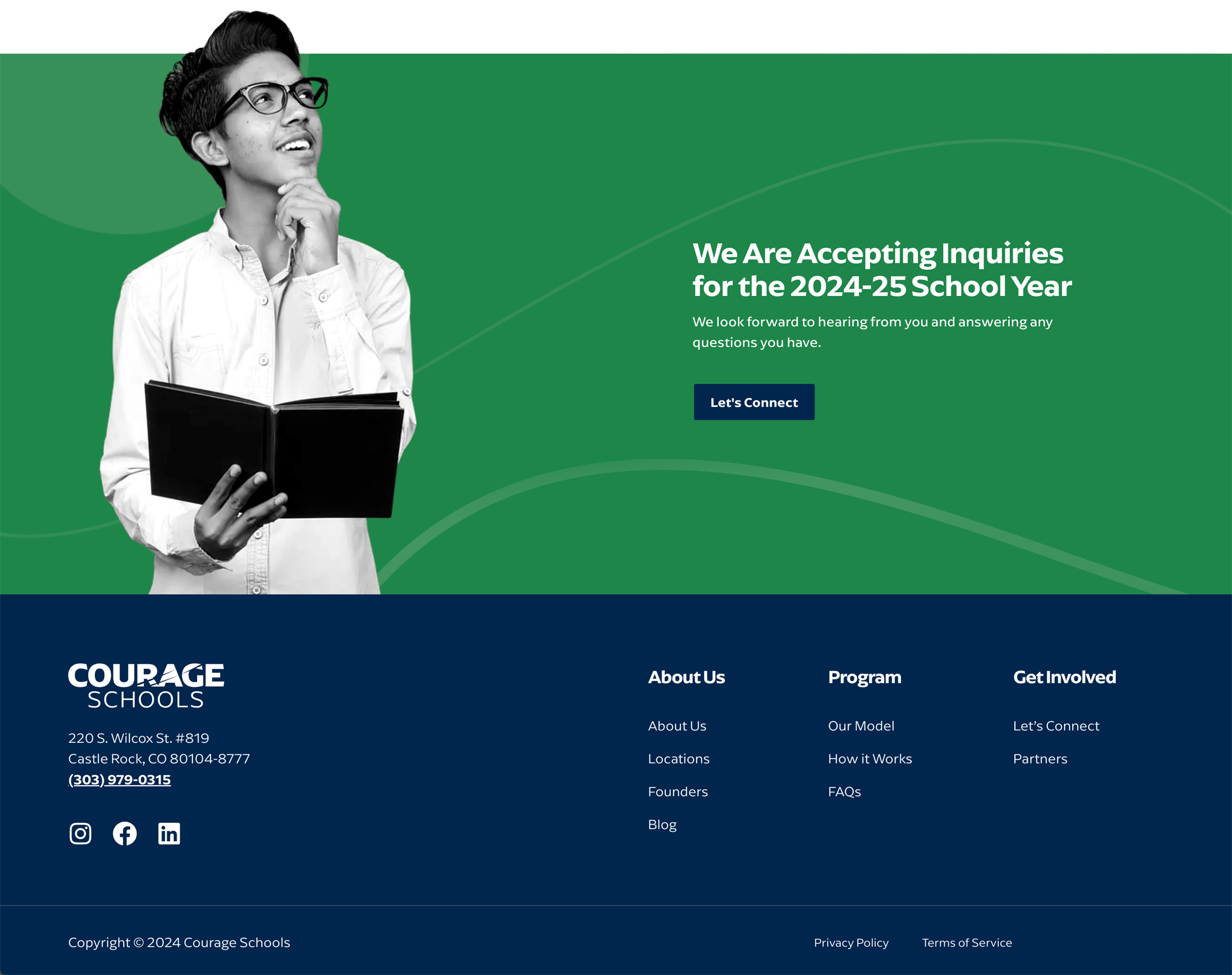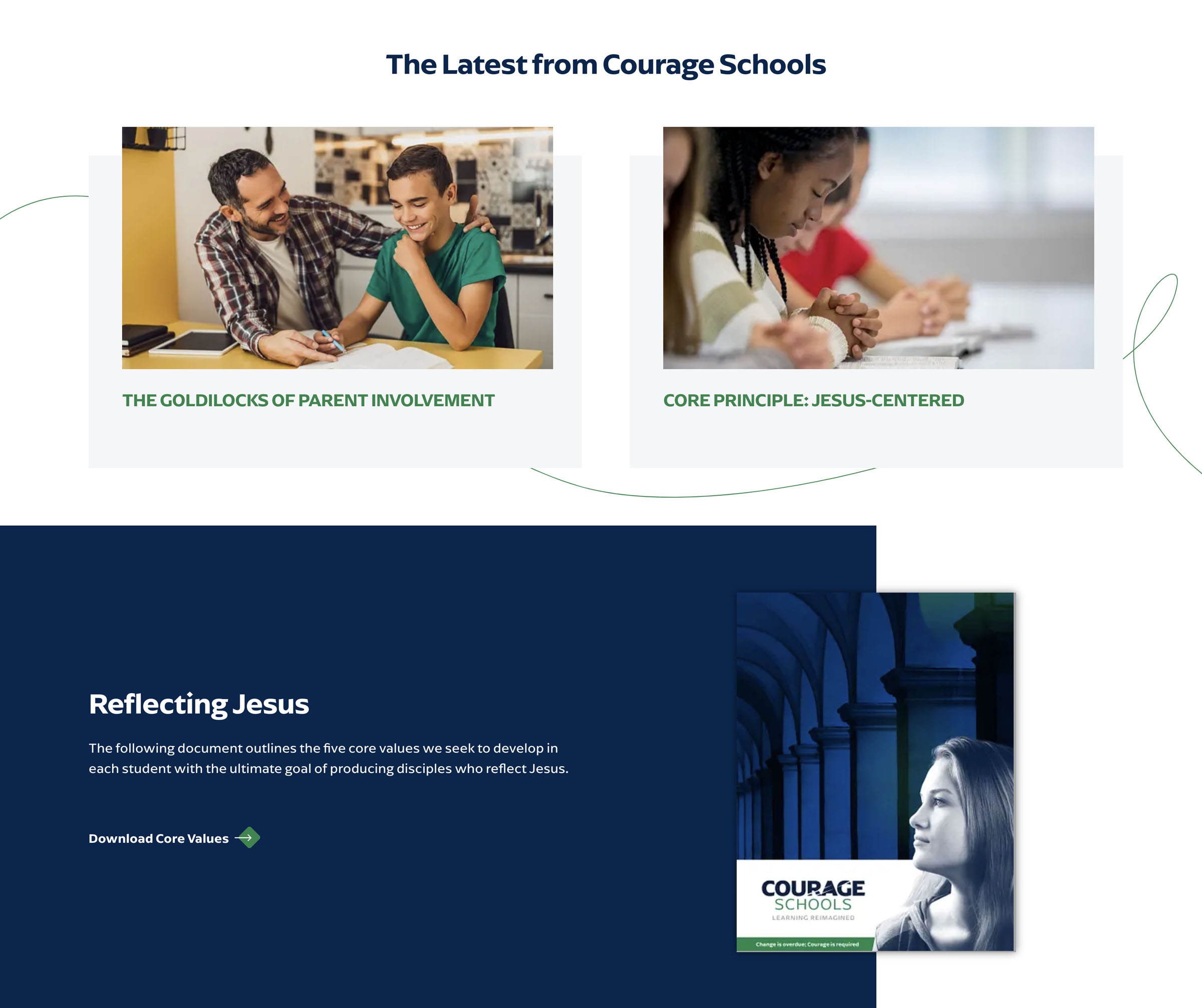 Courage Schools emphasize mastery, where tests and grades are not the measure of success and learning expands far beyond the classroom. We helped Courage Schools share their unique vision with a new website featuring their model, locations, and partnership opportunities.